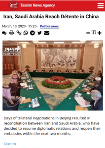 Iran, Saudi Arabia: This is fascinating. Trilateral, so the Chinese played some role. Here is the piece at Tasnim: https://www.tasnimnews.com/en/news/2023/03/10/2865380/iran-saudi-arabia-reach-d%C3%A9tente-in-china