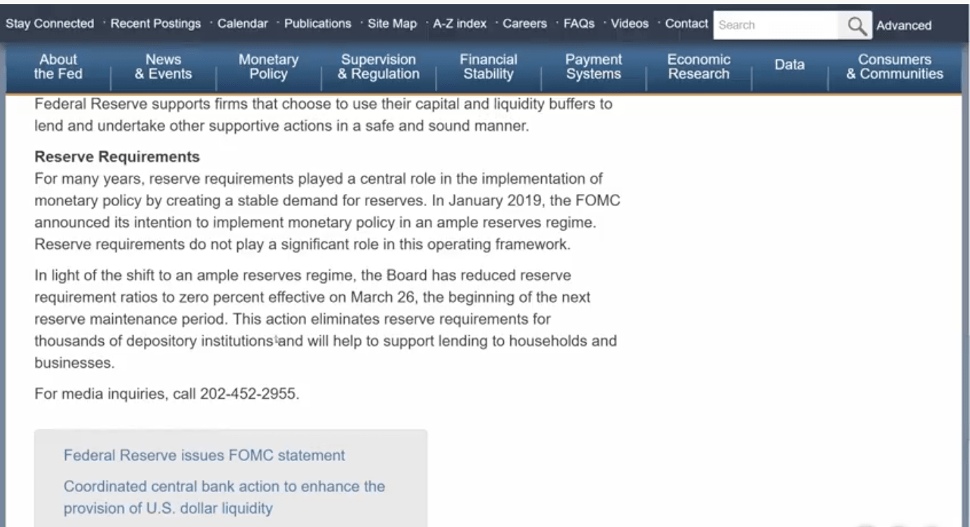 ZERO % RESERVE REQUIREMENT RATIO for thousands of depository institutions! I missed this until today, but here it is in black and white on the official “Federal” “Reserve” website. Notice I put both words in inverted commas – why? – well, because the Fed is neither Federal nor is it… Read more »