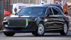 Just for fun, Xi Jinping’s coach: an ultra-rare model – the Hongqi N701, a Chinese-made luxury car produced for high-ranking officials