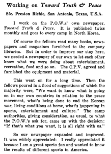 The story is told of a small group of prisoners of war who wanted to start a newspaper and that was approved.  The main request from their readers was news on peace!  “We want to know what is happening in our own countries in relation to the peace movement …