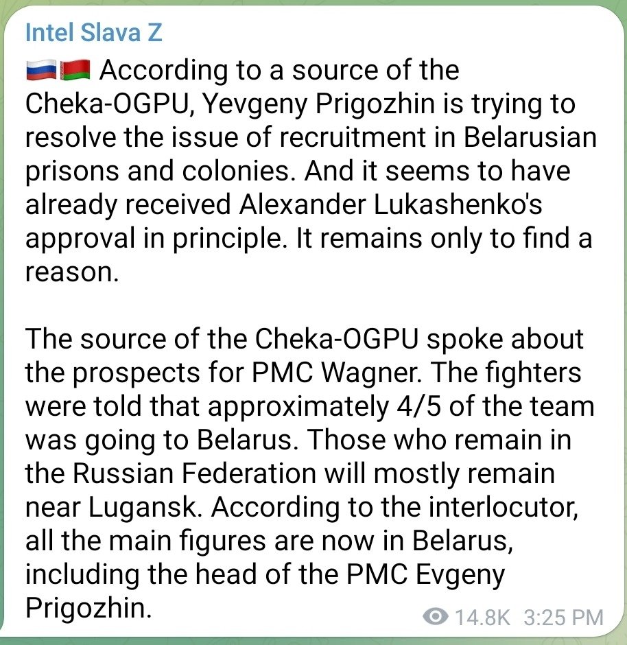 The Chef may have more lives than a cat??! Or he sang such a sweet tune as to permit a focused recycling… hints that 25,000 Wagner are going to Belarus: