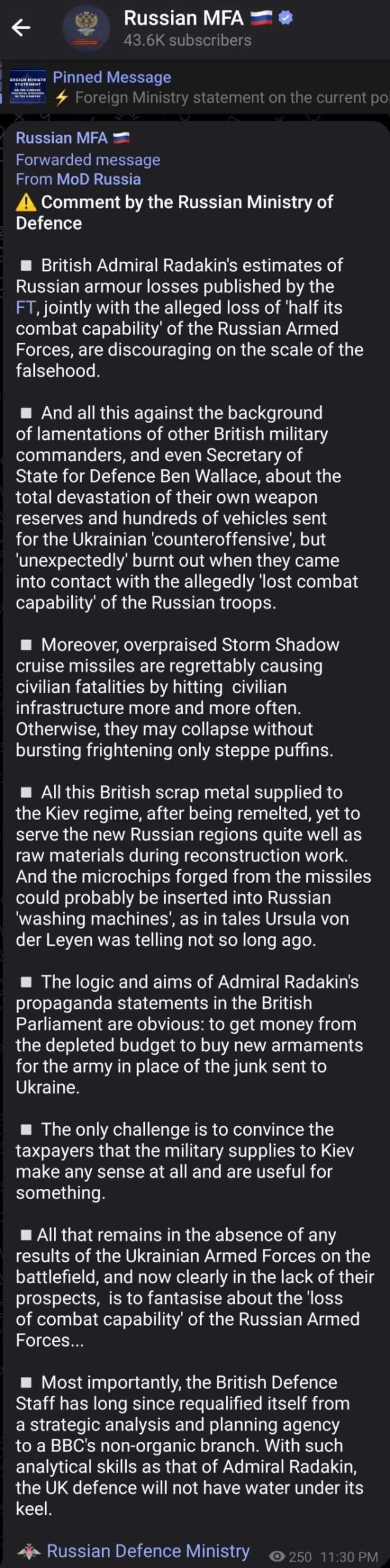I’ve posted up the current MoD Russia briefing as the action is wide-spread. https://sovereignista.com/globalsouthforum/topic/daily-war-room/#post-15935