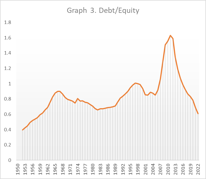 - More recent statistics are questionable as the debt ratio plunged to just 28% in 2022 as a result of private equity entering the housing market as rental income far exceeded borrowing costs for large investors. It seems that many small landlords lost their over-mortgaged homes to large investors, while the decline in mortgage rates did enable some recovery in home ownership rates to 65.8% today. ↑