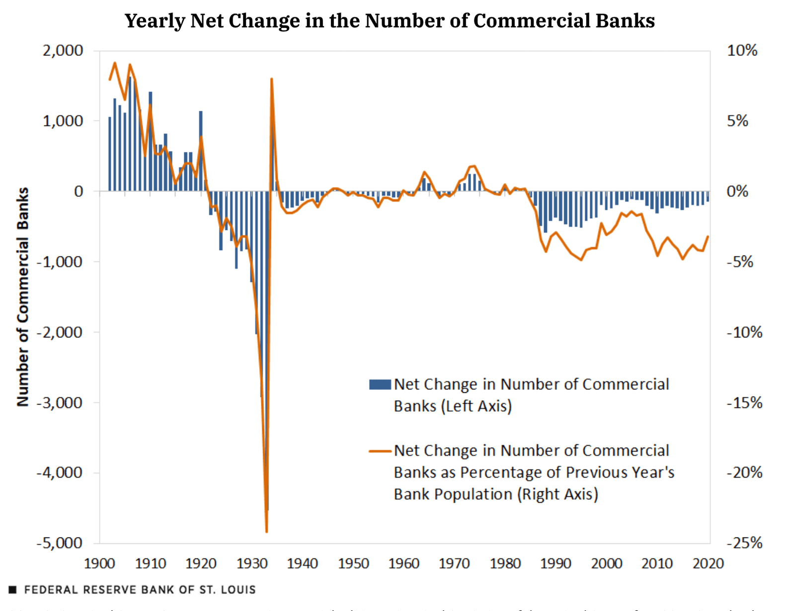 Absolutely Amarynth – and even R.B. St. Louis himself informs us that the total number of banks in the US declined from an all-time high of 30,456 in 1921 to the current tally of only just over 4100 – this represents a loss of 5 out of every 6 banks.… Read more »