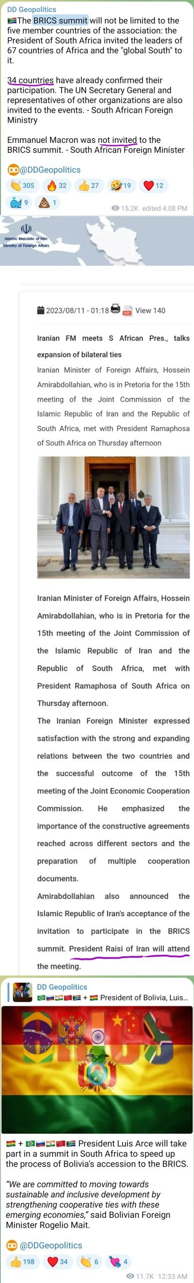Even without Putin’s attendance, this BRICS meeting is turning into a landmark event. More and more Heads of State announce they plan to attend. As with Russia-Africa Summit, most may send lower level delegations. The momentum is too strong to stay away..