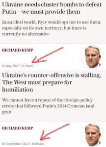 “Time is running out for Ukraine. After 18 months of war, it is no longer a question of if the Western alliance will falter, but when,” retired British Army Colonel Richard Kemp told The Telegraph.