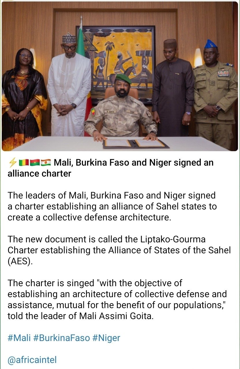 A big step to a Union State in the Sahel. While Armageddon’s less gentle comrade General Yunus-Bek was visiting Mali, they signed the defense pact of the three Juntas, called “l’Alliande des Ètats du Sahel (AES).”