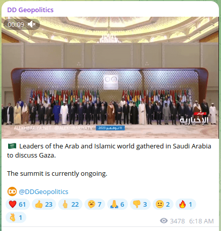 Nov 11 2023 Arab-Islamic (57 nations) ongoing summit in Riyadh: Collection of comments