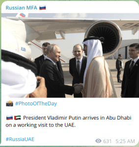 President Vladimir Putin to visit UAE, Saudi Arabia. Peskov stated. ” All of this will happen practically over 24 hours.” From this, we can fairly assume that whatever the agenda items are, they have been agreed and confirmed. It is only now to figure out why? this visit.