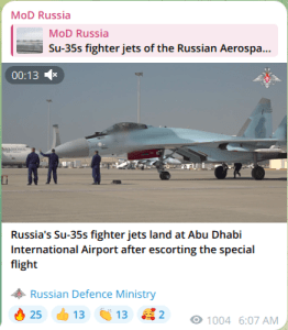 The aircraft of Russia’s Supreme Commander-in-Chief completed a non-stop flight to the United Arab Emirates, escorted by a fighter wing of the Russian Air Force, fully armed.
