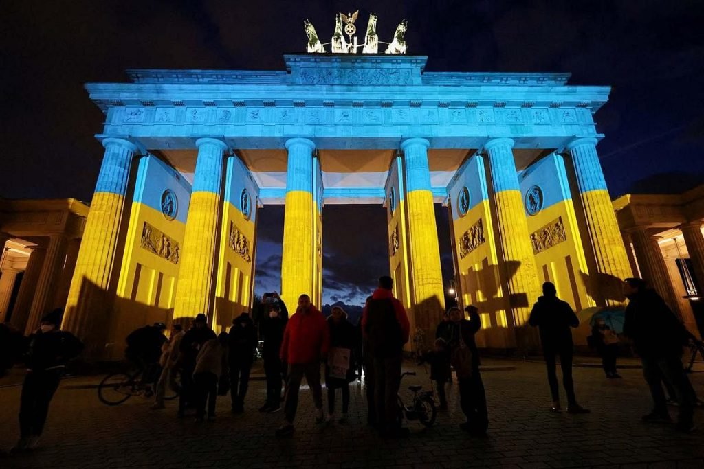 Berlin’s Brandenburg Gate in the colors of the Ukraine