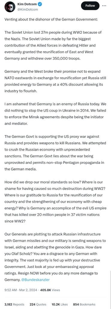 Nevertheless, it was undoubtedly the start of the Ukraine conflict in February 2022 that has precipitated the cascade of failure we see now. Certainly, Germany has made many poor decisions during this time, not the least of which was its headlong plunge into supporting the US-led proxy war against Russia. Relatedly, watching Russia’s sanctions-ridden economy rebound and return to growth – while their own economy struggled – defied everything the German elites would have imagined. That in itself is a narrative-shaking development.