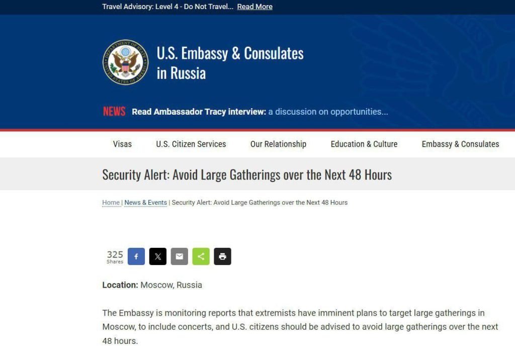 Two weeks ago, the U.S Embassy published a warning to its citizens about possible attacks in crowded places in Moscow.