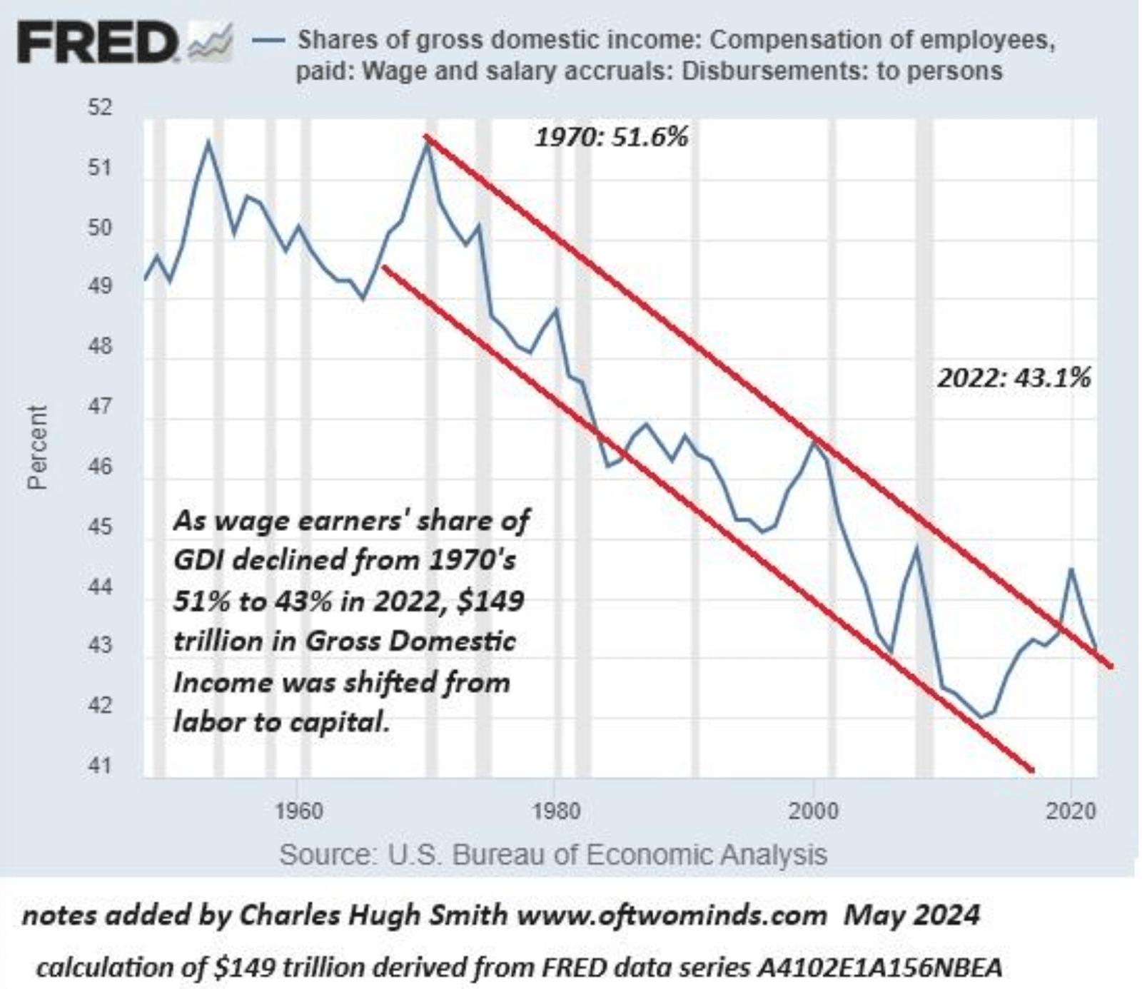 Squeezed For Decades, America’s Working Class Is Finally Up Against The Wall… Authored by Charles Hugh Smith via OfTwoMinds blog, https://www.zerohedge.com/personal-finance/squeezed-decades-americas-working-class-finally-against-wall The net result is America’s working class is up against the wall, maxed out: whatever lines of credit that were available have been tapped (credit cards, “buy now, pay… Read more »
