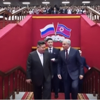 It is an amazing moment. Like one amoeba, the geopolitics channels switched and started carrying coverage of Mr Putin’s arrival, Kim Jong Un’s welcome, the handshakes, the soldiers marching by, the thank-you’s, the smiles, the two men entering their vehicle, the convoy with a gazillian motorbikes leading it, the streets. It looks like shooting a megabudget megamovie and the observers cannot get enough!