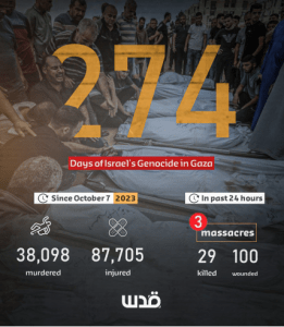 That number, 200,000 is coming to the fore again. The Lancet records 186,000, i.e., 7.9% of Gaza is dead. Just remember, there is no ethnic cleansing in Palestine or Gaza. The entity does not do ethnic cleansing. Genocide? What genocide? They are only seeking to destroy Hamas and the story is getting old. The only hope I see is that the democratic cadres in the US will want to get some votes and for that reason alone, encourage Netanyahu to quit the shelling and bombing. It is a forlorn and a small hope.
