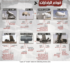 The jihadist leader adds that the enemy, “after acknowledging that these capabilities are now available to us, resorted to new steps focused on the world of technical intelligence, using various types of detection radars, including the Iron Dome 2084 Elm radar, the Patriot radar which has proven to be a failure and seems to be on its way out of the field with the announcement of its failure, and the tactical radars relied upon more against low-altitude drones like the RPS 42. Additionally, they rely on ‘friendly radars’ such as those from UN teams and countries in the region.