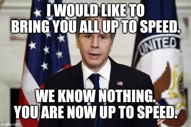 Blinken is a liar who interfered in the U$ election with his 52 experts that said the laptop was bunk. He, along with Jake Sullivan who lied to the FBI and had a hand in the Steele dossier, should both be in prison.