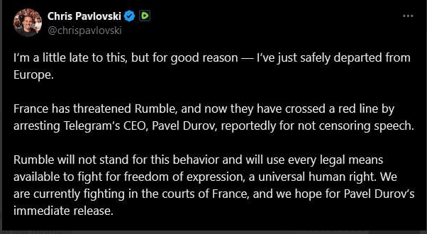 Rumble founder Chris Pavlovski sees the writing on the wall – quickly packs bags and leaves Europe.