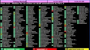 This was the first agenda item for the UN High Level week.  It is a 30 page long document and I have not fully integrated it.  With great fanfare, the resolution was adopted today with a vote of 143 in favor, 7 against and 15 abstained.  The joyful announcement stated:  “This key outcome of the Summit of the Future is a once-in-a-generation opportunity to steer humanity on a new course towards our common future.