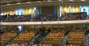Most diplomatic delegations left the hall. Those in the back do not have formal status. I’ve since learned that these were mostly New York zionists and Netanyahu packed the benches.
