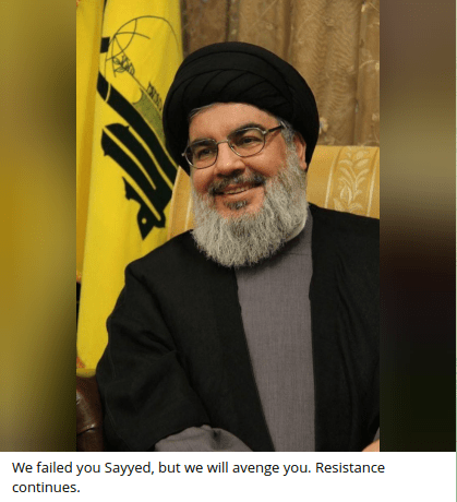 Statement issued by Hezbollah on the killing of His Eminence Sayyed Hassan Nasrallah