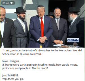 So here is my commitment to you on the solemn date, I will not allow the Jewish state to be threatened with destruction, I will not allow another holocaust of the Jewish people, I will not allow a jihad to be waged on America for our allies and I will support #Israel’s right to win its war on terror, and it has to win it – Trump’s pledge ignores 1000s more in Gaza and Lebanon that Tel Aviv has murdered.