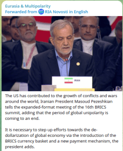 More comments from Iran. Bear in mind this is Iran’s first attendance as a fully-fledged member of BRICS: