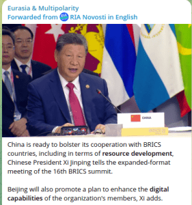 More critical comments from Xi Jinping: https://sovereignista.com/2024/10/23/brics-day-2-xi-jinping/