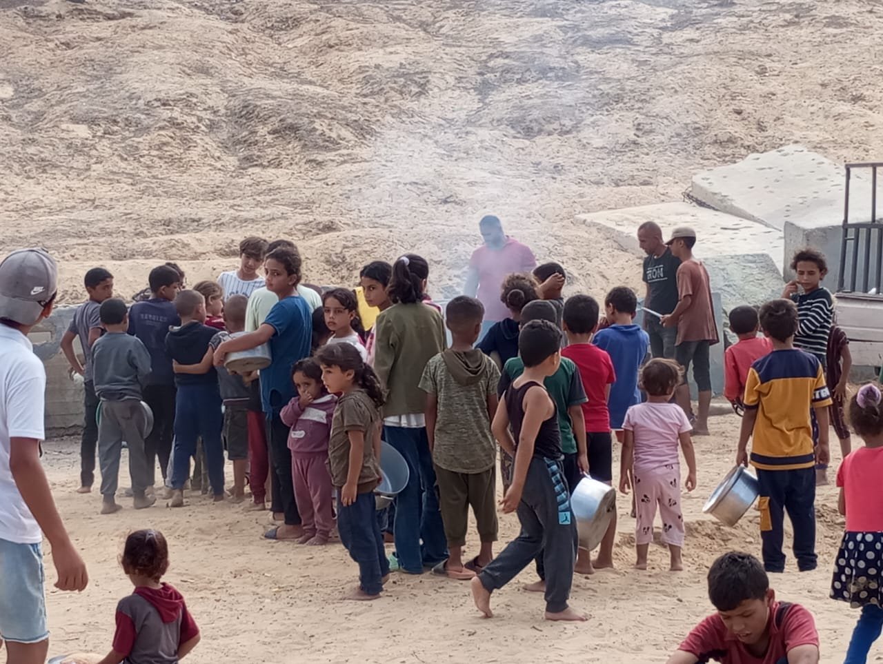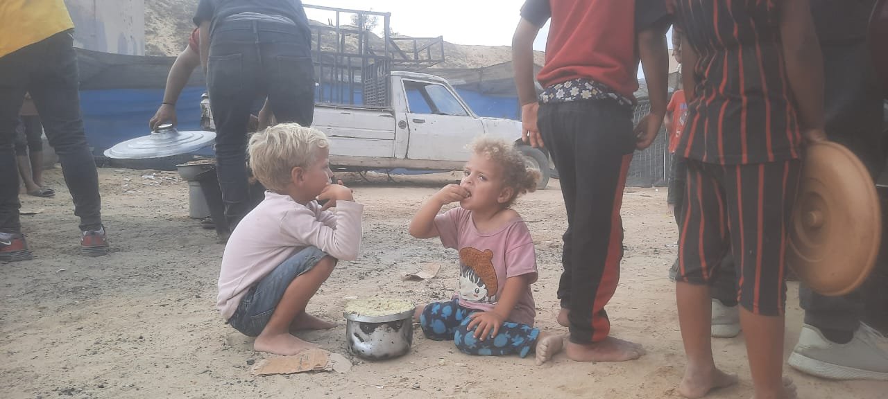Families, even those who are residents and not displaced, are unable to buy practically anything, because the prices of what is available on any given day – and it is not certain that those products will still be available the next day – are so high that ordinary people can’t even feed themselves with the bare essentials. Food supplies arrive bit by bit and are sold at the market, which we can call a “black market”. Obviously I am only talking about Khan Younis and its surroundings. I know that in Gaza City and in the whole of the north of the Strip, the situation is even more dire. The majority of families and all of the displaced, who are almost one million three hundred thousand, live on international assistance… that is, thanks to what we volunteers manage to procure. But, it must be said, that even here in Khan Younis we are experiencing famine.