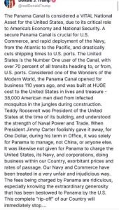 “WE WILL NEVER EVER LET IT (PANAMA CANAL) FALL INTO THE WRONG HANDS.” President @RealDonaldTrump