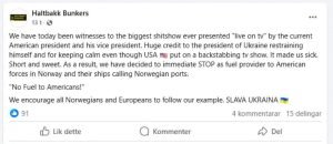 Norway fuel giant Haltbakk Bunkers stops supply for US forces.