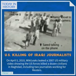 Collateral Murder. Today we think back to the Wikileaks 2007 US military video showing the US forces killed a dozen civilians in Baghdad, including two journalists working for Reuters. This leak gave rise to Julian Assange being tortured and eventually, after years, released, but with proverbial handcuffs on, as he had to plead guilty to get out of jail.