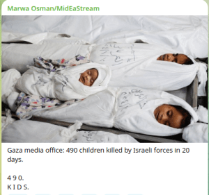 11:00 – 12:00 – 2 martyrs from shelling in Shuja’iyya, E. Gaza City. Gunfire S Khan Younis. Martyr from shelling central Khan Younis.