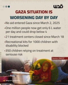 18:00 – 19:00 – Airstrike on Sha’af, east of Gaza City. Shelling Shuja’iyya. Smoke bombs in Khan Younis. Another strike in eastern Sha’af. Wounded in shelling east Khan Younis. New airstrike Shuja’iyya, Al-Mansoura St. 2 martyrs, several wounded from IOF targeting Al-Jadida school shelter, Tal Al-Zaatar. Martyr and wounded from shelling southern Khan Younis. Shelling east of Gaza City. Martyr from drone strike in Sheikh Zayed. Martyr from shelling N Khan Younis.