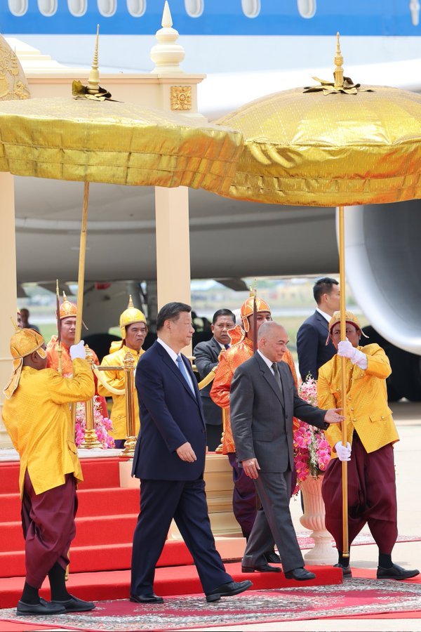 Cambodian King Norodom Sihamoni held a grand ceremony at the airport to welcome President Xi. pic.twitter.com/qxDBKGydqU