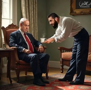 Syria: The world is lauding a brutal terrorist, now reformed and in charge. There is no law left.ย A terrorist may reform, but a terrorist must also be lawfully taken to task for previous actions.ย Now it is the Trump figure pushing the Bibi’s chair in for him and the Jewlani (AI image) handing over a cup of tea.ย It’s not as if it is not crystal clear.