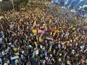Israelis take to the streets of Tel Aviv demanding an end to the ongoing war in Gaza and a ceasefire deal to secure the release of Israeli captives being held in Gaza.