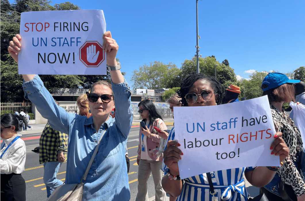 Protesters from the U.N. and its specialist agencies held banners reading: “STOP FIRING UN STAFF NOW!” and chanted: “U.N. staff are not a commodity”. Smaller protests also occurred in Thailand and Myanmar on May 1, U.N. staff said. Apparently, many contractors have already been asked to go.