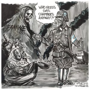 Slithering quickly out of his corner, Netanyahu hit back and equal to calling the holocaust, called October 7 (which is the same as calling Hamas).ย โThe leaders in London, Ottawa and Paris are offering a huge prize for the genocidal attack on Israel on October 7 while inviting more such atrocities,โ and reiterated that he will now take control of all of Gaza.ย His words: ย ‘despicable antisemitic blood libels’.