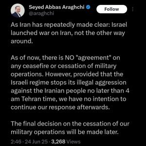 Now we hear from FM Araghchi (it is past 4am Tehran time)