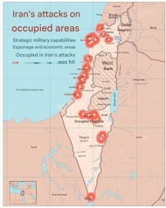 The truth is that ‘Israel’ actually got clobbered in what Trump calls the 12-Day War, with massive amounts of documented damage and even more military damage under censorship. For the first time in ‘Israel’s’ life, used as they are to thrashing everyone in the neighborhood, they took a beating. This is a map Iran released, and they were able to hit ‘Israel’ everywhere, including military command right in the middle of Tel Aviv.