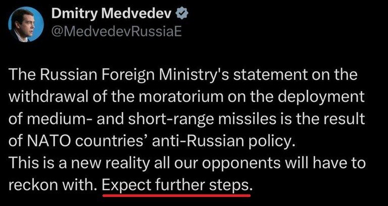 The above steps by the collective West will form and build up destabilising missile capabilities in the regions that are adjacent to the Russian Federation, thus creating a direct and strategic threat to our country’s security. Overall, these dynamics have serious negative implications for regional and global stability and dangerously escalate tensions between nuclear powers.
