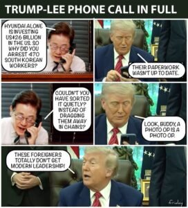 300 Skilled workers and engineers from South Korea building a Hyundai manufacturing plant in Georgia, were dragged away by ICE and dumped in an immigration center, because of what seems to be a paperwork snafu. At the end of the day, it was negotiated that they cannot be dragged away in chains and handcuffed, and they cannot have passports stamped ‘deported’. Lee of South Korea said the U.S. gave the detainees a choice between staying and going home. Ultimately, one South Korean national who has relatives in the U.S. chose to stay; the rest left. There are still another 150 in limbo. I listened to a few videos from the engineers, and they will not be returning to build the plant and train American workers. Reindustrialization is a far way off!