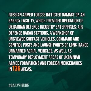 ◻️ Russian forces unleashed one large-scale, high-precision strike and six coordinated attacks using unmanned aerial vehicles (UAVs) against the military facilities of radical Ukrainian battalions.