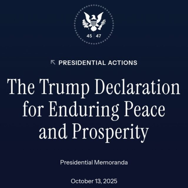 Oct 13 2025 The White House published “The Trump Declaration for Enduring Peace and Prosperity”