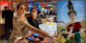 (L): Uyghur businesswomen at the fabulous Dunhuang Night Market ; (R): The Desert Princess look. Affordable. Less than $60 for a set of clothes, make-up, 25 exclusive pics and retouches.