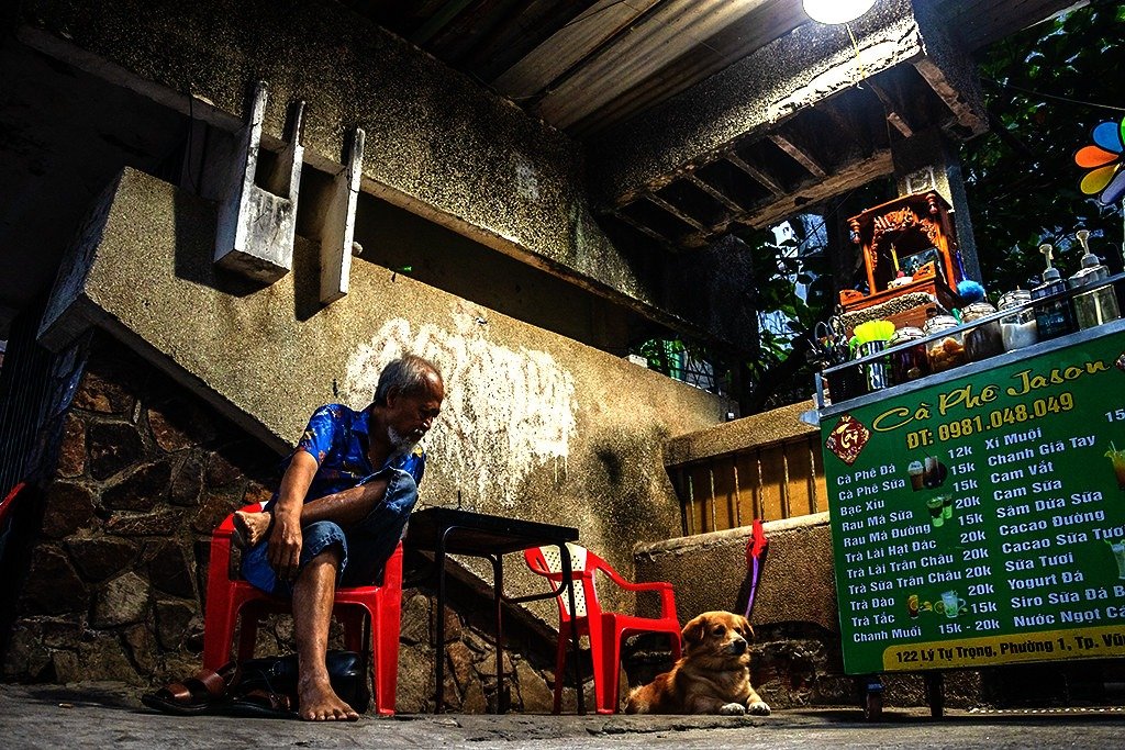 On the way to Coffee Seven, I noticed the homeless Cambodian was still sleeping outside Ông Bầu, his usual spot. His dark feet stuck out, corpse like, from his clean Tweety Bird blanket.