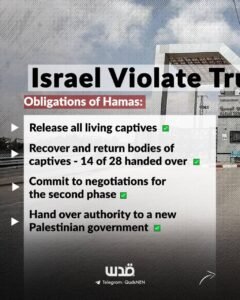Meanwhile, Hamas stated that the continued closure of the crossing and the prevention of movement of citizens and the wounded, and the obstruction of rescue teams and equipment constitute a blatant violation of the agreement’s terms. The movement stressed the urgent need to reopen the Rafah crossing, allow the entry of aid, and enable specialized teams to perform their humanitarian duties.