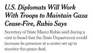 The real nature of this Trump agreement is now beginning to show its face. It is not that we didn’t know and cannot read the long trend, it is that one little part of Gaza is still relatively free of killing for now. And I’m still rejoicing for that small mercy. In the past day, there were announcements by Vance, Witkoff and Kushner. Vance pointed out that Kushner is the investor. From that we know that the plans for the Palestinians do not include Palestinian sovereignty over their affairs. Besides underhanded dealings, so far the Gulf States insist on a 2-State solution. Kusher stated that reconstruction will only happen in areas controlled by Israel.